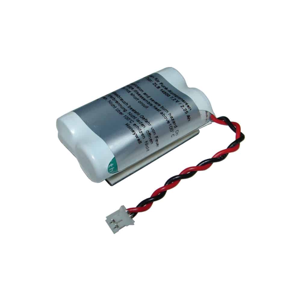 Lithium-Batterie für Funk-Komponenten des Funksystems, mit Anschlusskabel.