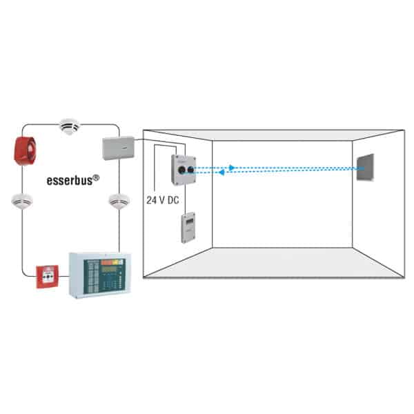 Der LRMX Linienförmige Rauchmelder bietet zuverlässige Brandfrüherkennung durch Infrarot-Lichtstrahlen. Bestehend aus drei Komponenten – Melder (Sender und Empfänger), Auswerteeinheit und schrittmotor-getriebener Melderbasis – gewährleistet das System eine präzise Überwachung großer Flächen. Ideal für anspruchsvolle Umgebungen, in denen herkömmliche Punktmelder an ihre Grenzen stoßen. Für eine Reichweitenverlängerung auf bis zu 80 m, kann das Reflektorset (Artikelnummer 761401.10) eingesetzt werden.