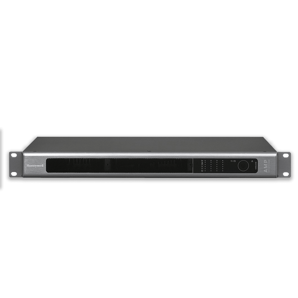 585030 Leistungsverstärker 4XD125B VARIODYN ONE 4 Kanal Leistungsverstärker mit integrierter Akkuladeeinrichtung für das Sprachalarmsystem VARIODYN ONE zum Anschluss an den Intelligent Network Controller INC. Leistungsmerkmale: - In der EN 54-16 Zulassung des VARIODYN ONE enthalten. - Geeignet für Anlagen nach VDE 0833-4 oder EN 50849 bzw. VDE 0828 - Klasse D Technologie - Wirkungsgrad >= 80% - Nennleistung 4 x 125W - Selbstüberwachung und Selbsttest durch Mikrocontroller - Geschützt gegen Überlast, Kurzschluss und Überhitzung - Sanftes runterregeln in 3dB Schritten bei Überlastung - Eingebauter Lüfter mit temperaturgesteuerter Drehzahlregelung - LED-Statusanzeigen pro Kanal - LED-Statusanzeige für Sammelmeldungen - Spannungsversorgung über 230V AC und 24V DC (Notstrom) - Intergrierte Akkuladeeinrichtung nach EN 54-4 zur Ladung von Akkumulatoren bis zu einer Kapazität von 65 Ah (2 x 12V / 65 Ah), zur Notstromversorgung des Verstärkers und externer Komponenten - Symmetrische Audioeingänge und Steuerung über Cat-5 Kabel mit RJ45 Stecker - 100V-Ausgänge über vorkonfektioniertes Systemkabel, verriegelbar - Galvanische Trennung der einzelnen Verstärkerkanäle - CAN Bus Schnittstelle für Servicefunktionalitäten Technische Daten: Technologie: Klasse D, 100V Ausgänge Ausgangsleistung: 4 x 125W (bei 230V AC) 4 x 125W (bei 24V DC) Nennspannung: 230V AC 50 / 60Hz Notstromversorgung: 21,5V DC .. 28,5V DC Frequenzgang: 50Hz ... 22KHz ± 3dB Klirrfaktor: < 0,3% bei 1kHz Sinus Signal Rauschabstand: 90 dB Kanaltrennung: > 75dB Wirkungsgrad: (maximale Leistung) > 80% Abmessungen: (HxBxT) 44 x 483 x 402 mm HONEYWELL Leistungsverstärker 4XD125B für VARIODYN ONE 585030