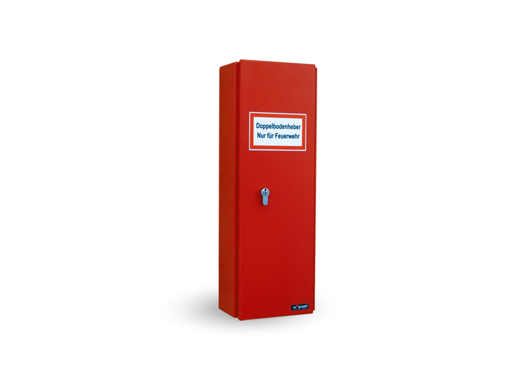 aus Stahlblech, pulverbeschichtet in feuerrot (RAL 3000). Schwenkbare Tür mit Aufnahme für Profilhalbzylinder, zur gesicherten Aufbewahrung eines Saug- oder Krallenhebers. Lieferung inkl. Montagematerial und Saugheber.